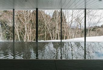 «En primer lugar, el gran baño público tiene un diseño abierto donde puedes disfrutar de la vista del monte Awagatake, una de las 300 montañas famosas de Japón. Un lado del baño interior está hecho de vidrio, lo que te da la sensación de estar afuera. Aunque estés en el interior, el mundo plateado que se extiende frente a ti es increíblemente hermoso. El baño al aire libre es una fuente termal infinita que te hace sentir conectado con la naturaleza cuando te sumerges en él. Puedes disfrutar del dinámico paisaje nevado. de Satoyama sin obstruir tu vista. Calmará tanto tu corazón como tu alma». (Sr. Uetake)