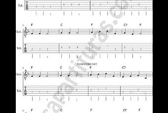 Tablatura del punteo para guitarra en fa mayor de la canción tradicional popular Sobre el Puente de Aviñón
