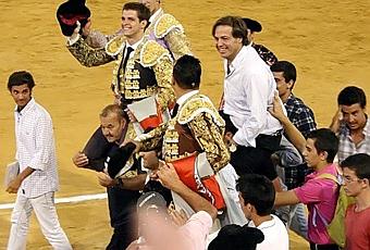 Dicho esto y puestos a ver la película de los hechos en esa pantalla formato, de importación americana, sería bueno decir que lo sucedido en la tarde de ayer en el coso de la Avenida de Vilchez, fue bueno para la fiesta en general. Los toros se movieron, se dejaron. Embistieron nobles, sin plantear dificultades y permitieron el toreo moderno, que como se sabe consiste en pegar dos mil muletazos al toro carretón. Citar al hilo del pitón, no cargar la suerte y quedarse descolocados, muletazo tras muletazo. Y por supuesto acompañar en vez de torear, que es la función fundamental de una comparsa en cualquier feria que se precie. Cualquier necio que niegue lo que se vio en el cinemascope, debe ser excomulgado de esta religión que es la tauromaquia. O se está con el sistema o contra él, y un servidor no va a ir contra el sistema, solo me limitaré a enseñar mi bandera y a coexistir pacíficamente con ellos. Me tranquiliza que no soy el único, en la grada del ocho había unos que también se limitaron a enseñar su bandera, la republicana, y que también decidieron coexistir pacíficamente con las vociferantes aclamaciones del populacho que emocionado contribuía a que esta corrida pasara a la historia como la mejor jamás habida en la plaza de Almería.”