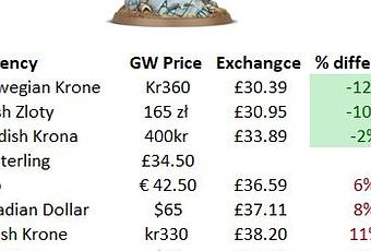 Es mas caro,o barato, comprar cosas de GW en unos países que en otros? Si, pero hay muchos factores a tener en cuenta y al final la cosa no es exactamente como aparenta ser, así que puede dar a equívocos. Lo digo,mas que nada por si alguien esta pensado que sería buena idea, yo que se, pillar cosas a Polonia.