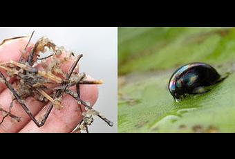 Sobrevivientes, huevos de carpa y una especie de escarabajo acuático. Fotografías de Danswell Starrs y la Universidad Kobe.