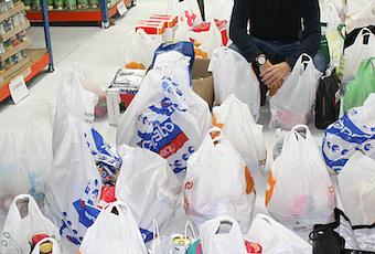 Cuando estaba a punto de empezar mi presentación Javier Polinario, que participó ayudándome en la organización y el control de accesos, me comentaba que no se habían conseguido todavía los 400 kg y que estábamos alrededor de los 300. “Qué lástima” pensé, no lo hemos logrado. Lo que no me pensaba es que seguirían llegando bolsas y más bolsas. Incluso no recordaba que debía sumar los kg que me habían hecho llegar aquellas personas y empresas que no pudieron asistir al evento. Así que la cantidad exacta de la recaudación no la supe hasta que no hicimos el recuento al día siguiente en el almacén donde se llevó la comida.