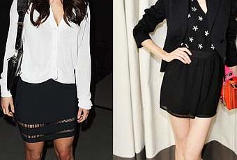 Falda negra: segurisimo que todas tenemos una(s cuantas) en el armario. Si tiene un toque especial, bastará con una camisa blanca. La más sencilla, con un top con apliques, una chaqueta negra, cartera de mano de color y estilismo resuelto.