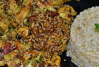 Al principio consistía en un sofrito de pollo con especias, hasta que un día vi una receta de Jamie Oliver muy parecida con miel y sésamo y me encantó, así que no dudé en agregárselo a este delicioso pollo. El resultado, increíble.