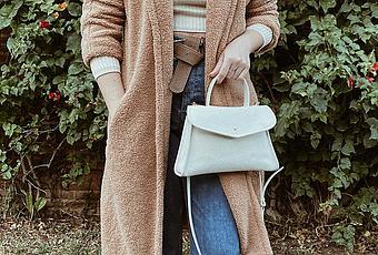 Abrigo de borreguito, jeans slouchy y mi bolso favorito.