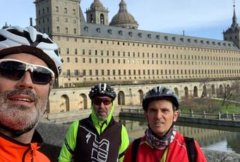 A las 8:15 apareció Jose Pablo con su puntualidad suiza. En quince minutos estábamos frente al palacio, porque Agustín ya nos estaba esperando. Tras las fotos de rigor inaugurando el reto Sol a Sol MTB, iniciamos la aventura. Próxima parada prevista: Villanueva de la Cañada para tomar un café antes de las cuestas de Valdemorillo.