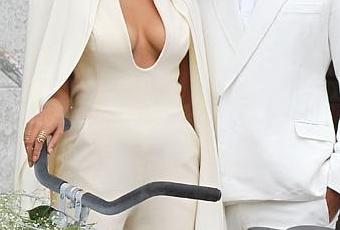 Solange lució un escotado mono color crema, diseñado por Stephane Rolland, y Alan acudió vestido de blanco.