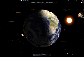 Otro gran recurso para trabajar en el aula con la PDI. Se trata de Solar System, una aplicación creada por la empresa sunaeon que nos permite el visionado interactivo del sistema solar. Muy configurable en los parámetros de visualización permite la interacción con los diferentes planetas y elementos del sistema solar. Además se puede elegir el castellano para los rótulos que aparecen en pantalla.