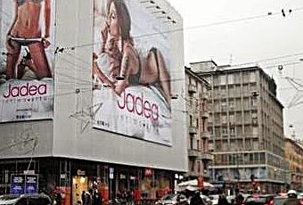 Allí mismo como se aprecia en la siguiente imagen, hay un maxi-poster publicitario de la bella Belén y pese a los esfuerzos de los conductores de prestar atención al tránsito intenso de Milano no pueden evitar dar una “miradita” a las bellas curvas de Belén que desde lo alto altera el largo trayecto de esa avenida con nombre argentino que conecta con los principales shoppings de la ciudad.