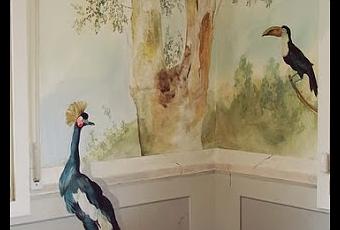 ... o del interior de un invernadero. En este caso, Fernand Renard pintó los trampantojos para el invernadero de Rachel Bunny Mellon, una de las “jardineras” más elegantes del siglo XX, en Oak Spring (Virginia, EEUU). Digo jardinera por citar una de sus múltiples ocupaciones durante sus 103, en agosto 104, años de vida. Os recomiendo ver todo el reportaje gráfico que hicieron de su jardín en Vanity Fair porque merece la pena. Desde luego, los trampantojos no pueden estar más logrados...