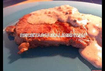 INGREDIENTES4 solomillos de ternera, una cebolla, 200 ml. de nata líquida para cocinar, 100 ml. de leche, dos cucharaditas de pimienta negra molida, una cucharadita de pimienta negra en grano, 50 ml. de Brandy, aceite de oliva, sal.