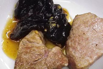 Sofreímos hasta que empiece a coger color. En la sarten o cazuela donde está la cebolla, agregamos las ciruelas, la carne y rehogamos un minuto.