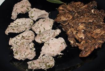 * Una vez hecho el solomillo emplatamos junto con los champiñones al ajillo, para la foto los he puesto separados pero lo mejor es servirlos con todo unido para que el solomillo no quede insipido.