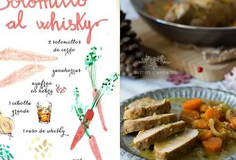 Ingredientes para 6 personas; 2 solomillos, 3 zanahorias, 1 cebolla grande, 250 ml de whisky, perejil fresco, almendras, ajos, sal, pimienta y aceite de oliva virgen extra, agua.