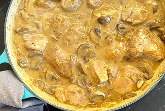 SOLOMILLO CON CHAMPIÑONES EN SALSA DE QUESO