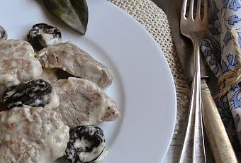 3- Cuando las llamas se apaguen, añadimos la nata, salpimentamos y llevamos a ebullición. Cocemos removiendo de vez en cuando hasta que la salsa reduzca. Añadimos las ciruelas, el zumo de limón, y removemos con cuidado hasta que queden bien integrados. Servimos.