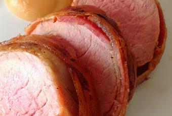 Cuando ya tengáis los solomillos envueltos en las lonchas de bacon, los colocáis en una fuente y los metéis en el horno, en la parte media y durante media hora.