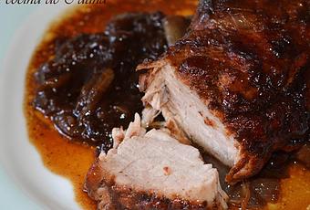 2 solomillos de cerdo4 cebollas gordasun vasito de vinagre de Módenaun vasito de azúcar morenosal, pimienta, pimentón dulce y harina1/2 vasito de aceite de olivaPreparación:Salpimentar los solomillos y pasarlos por harina y pimentón dulce.