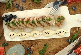 PORK TENDERLOIN WITH YOGURT SAUCE AND BLUEBERRIES