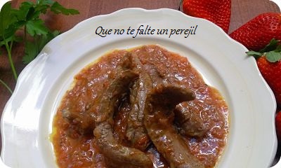 Si lo prefieres puedes triturar con la batidora pero yo prefiero ir dando con la cuchara . Introduce en los últimos minutos los solomillos en la salsa y sólo queda servir este delicioso plato de lujo.