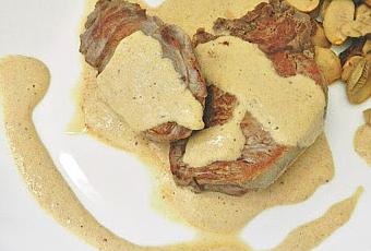 Servimos los medallones de ternera con la salsa y acompañados por los champiñones y a disfrutar!!!