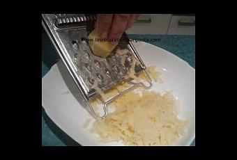 Mezclamos con queso rallado. La cantidad depende del gusto. Puede tener más cantidad de patatas que de queso (sabor suave), podemos equilibrar los dos ingredientes ó más queso que patatas (sabor intenso)
