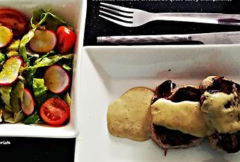 Descongelamos los solomillos, calentamos una parrilla para asar carnes, asaremos la carne y servimos inmediatamente junto con la salsa.