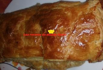 Estendemos la masa de hojaldre y colocamos encima una buena cucharada