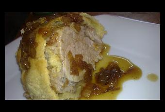 Solomillo Wellington y su salsa de cebolla caramelizada con reduccion de vino dulce
