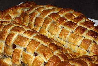 Metemos al horno previamente precalentado a 180º hasta que veamos que el hojaldre coge un color dorado. Servimos caliente, aunque templado e incluso frío está muy rico.