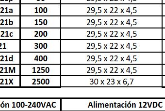 Adjuntamos la tabla de características técnicas con los alcances en m2 de cada uno de los modelos.