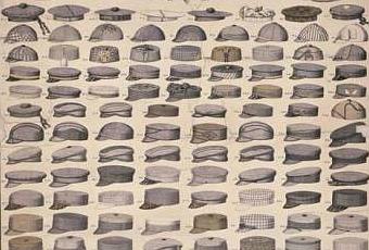 En primer lugar un cartel publicitario de 1889 de C. Gualdo: “Fábrica Especial de Gorras al por mayor”, un completo catálogo de sus gorras.