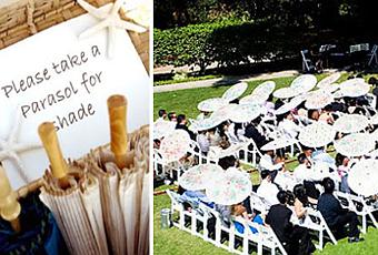 - Para que vuestr@s invitad@s disfruten de una pequeña sombra durante la ceremonia, podéis obsequiarles con una sombrilla. Este será el resultado: