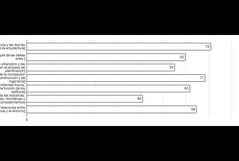 Los resultados de cada una de las competencias se podrá ver en una publicación final, pero aquí un adelanto de la encuesta realizada a más de 240 personas, profesionales formados en escuelas de arquitectura españolas. Muchas competencias están por debajo de la media, y por debajo del 50 sobre 100.