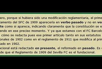 El fundacional está redactado en presente, el reformado en pasado. Es otra prueba de que el Reglamento de 1909 del Sevilla FC es el fundacional.”