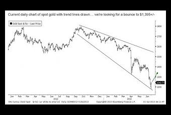 A la luz del análisis técnico, Carter Worth encuentra el objetivo a corto plazo: 1395 dólares la onza porque el próximo paso natural es un repunte del precio del oro de inversión. - Fuente: OroyFinazas.