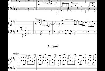 El Adagio en 6/8 presenta un ritmo pegadizo (corchea con puntillo-semi-corchea) que sirve de nexo de unión en la estructura tripartita (Exposión en el tono primncipal- Desarrollo en MiM y Reexposición); el Allegro combina pasajes en tremolo de corcheas con otros en tresillos, manteniendo el esquema formal de Exposición en el tono principal, Desarrollo y Reexposición. La tonalidad elegida para el Desarrollo no es la de la dominante ni la del relativo menor, sino la de Do M. La combinación en tempo rápido de ritmos binarios y ternarios hace de este Allegro un movimiento muy brillante.