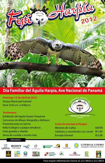 Sony Inter-American te invita al X FestiHarpía, que se realizará el domingo 15 de abril de 2012, de 9:30 a.m. a 4:30 p.m., en el Parque Municipal Summit, donde se desarrollará un variado programa de eventos para recaudar fondos a beneficio del Patronato Amigos del Águila Harpía, entidad que por más de 13 años se ha dedicado a la protección de esta especie.