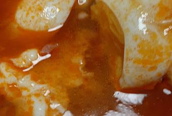 Dejar cocer unos 5 minutos y estallar los huevos en el caldo, removiendo hasta que se cuajen. o hacerlos escalfados.