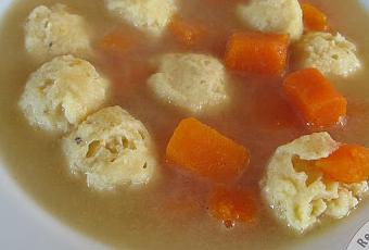 Para preparar las albóndigas, pondremos en un cuenco los huevos con un poco de sal, un poco de pimienta y la pizca de nuez moscada, los batimos ligeramente y añadimos los quesos rallados o picados en la picadora, la cucharada de mantequilla y la harina de maíz, mezclamos bien hasta que nos quede una pasta espesa (en caso necesario añadir más harina de maíz), con dos cucharillas de café vamos haciendo bolitas que ponemos en el caldo, dejamos cocer todo junto hasta que calabaza esté tierna. Las albóndigas debemos hacerlas pequeñas porque al cocer aumentan de volumen, en unos 10 minutos estará la sopa lista.