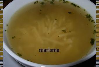 Cuando hierva ponemos perejil picado y echamos unos fideos gordos, no muchos que si no se espesa la sopa demasiado, y movemos bien. Bajamos el fuego y semitapamos la cacerola hasta que estén los fideos. Estos suelen tardar unos quince minutos.