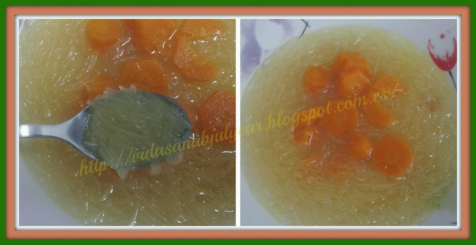 Poner todos los ingredientes menos los fideos de soja en la cubeta de la GM E , tapar con valvula cerrada, menú guiso 130º, 20 minutos, cuando termine despresurizar y colar el caldo, guardar la carne y las verduras, poner caldo en la cubeta de la GM E y añadir dos madejas de fideos de soja, menú turbo 1 minuto, servir solos ó con la carne al gusto de cada uno