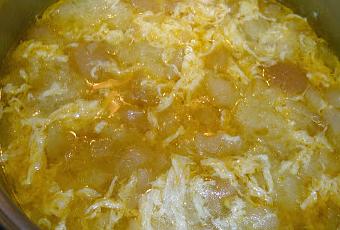 Cuando los ajos se empiecen a dorar, echamos el pimentón picante y retiramos del fuego, removemos la sartén y volcamos en la sopa.. la cantidad de pimentón depende de lo que os guste el picante, yo eché una medida de cucharadita de café.. los ajos puedes retirarlos y no echarlos en la sopa.. Echamos el huevo batido e inmediatamente lo revolvemos rápidamente.. Comprobamos la sal y dejamos reposar..