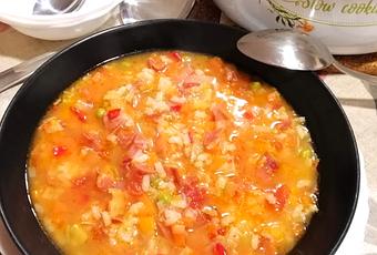 SOPA DE ARROZ CON VERDURAS Y JAMÓN