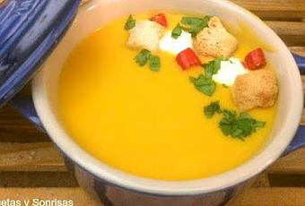 - Lo trituro junto al zumo de naranja ( no olvidéis si esta ácida añadirle miel o azúcar)- Añades la leche o nata- Corriges de sal .
