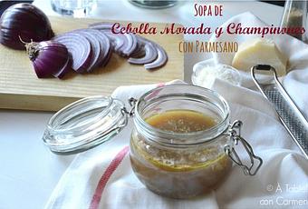 Ha vuelto el frío. Más bien, ha venido el frío, porque en Valencia, donde vivo, las temperaturas este invierno estaban siendo de lo más agradable. El viento huracanado y las nevadas del norte han conseguido bajar el mercurio, indicando que las temperaturas también han descendido. Apetece una sopa, una sopa de invierno, y la sopa de cebolla es típicamente invernal. Hoy, en casa, tenemos Sopa de Cebolla Morada y Champiñones con Parmesano.
