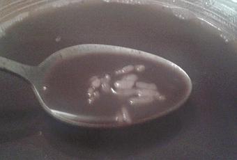 Una vez se tiene este líquido hay que colarlo, para eliminar las pieles o los trocitos que pueden haber dejado los frijoles. A parte, hervimos arroz, para añadirle a la sopa. Calentamos la sopa de frijoles y le añadimos el arroz cocido a parte.