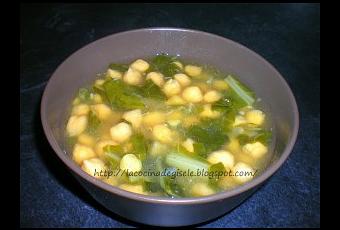 1/2 Kg de garbanzos 1 cebolla grande 2 dientes de ajo 3 papas medianas 200 grs de espinacas 1 litro de caldo de carne Sal al gusto Coloca en remojo los garbanzos la noche anterior y agrégales 1/2 cucharadita de bicarbonato para que queden mas suaves y se cocinen mas rápido. Enjuágalos y agregalos al caldo, agregales las papas cortadas, la cebolla el ajo y las espinacas. Cocinalos a fuego medio-alto por 1 hora aproximadamente hasta que estén suaves. Rectifica de sal y sirve caliente