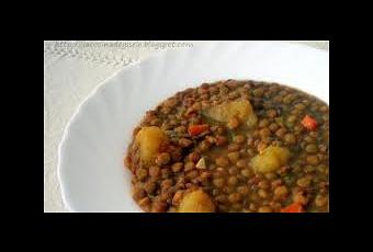 Sofrie la cebolla, el ajo y la tocineta en el aceite, agrega las papas y las zanahorias peladas y picadas en cuadros, agrega las lentejas y sofrie todo por 3 minutos.