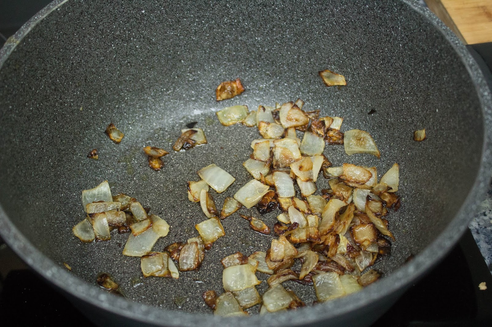 Yo hice lo mismo tanto en Thermomix y en cazuela, porque la de la Thermomix no lleva cebolla y la de la cazuela sí. En la cazuela se añade la cebolla pochada anteriormente.